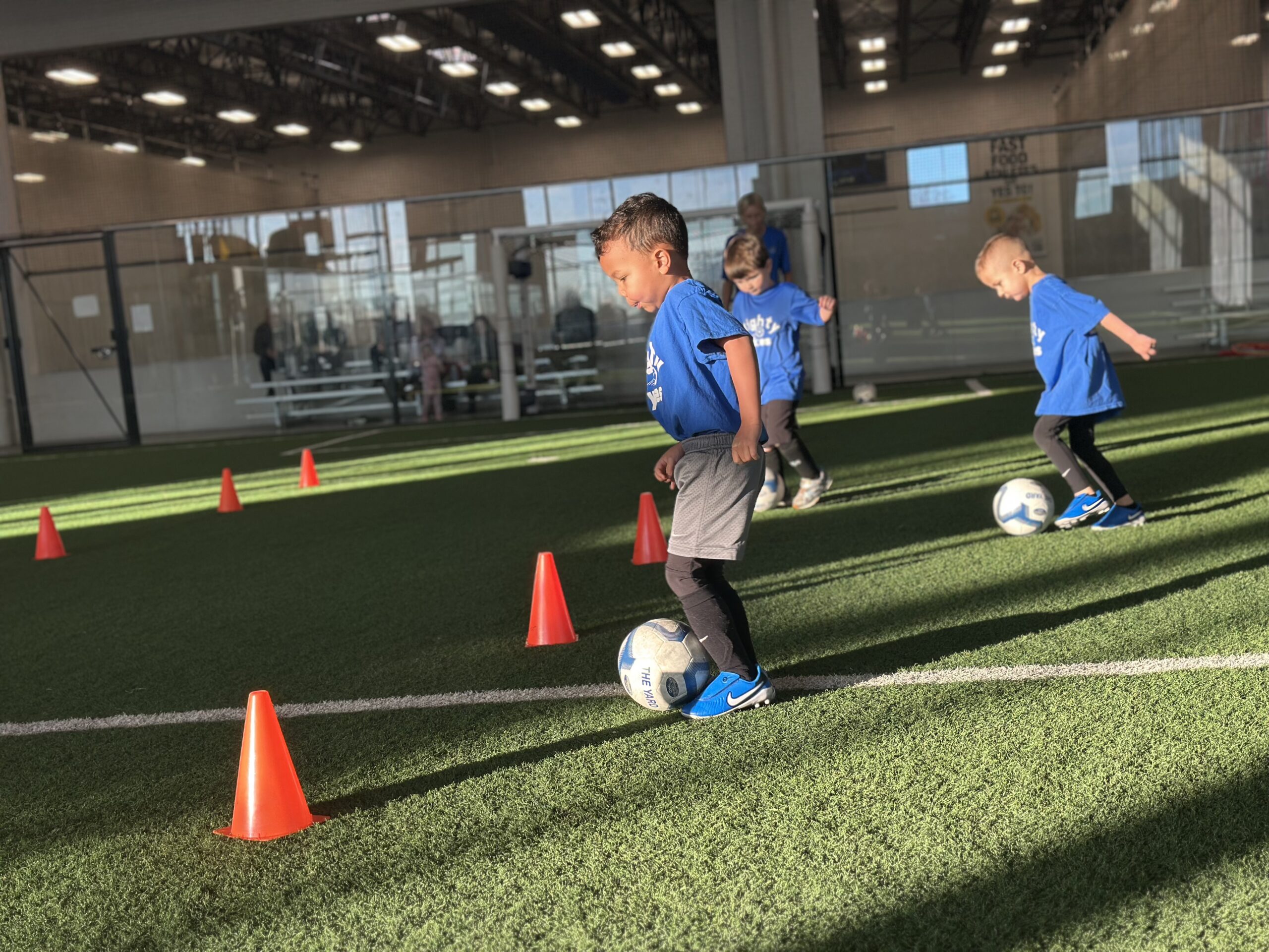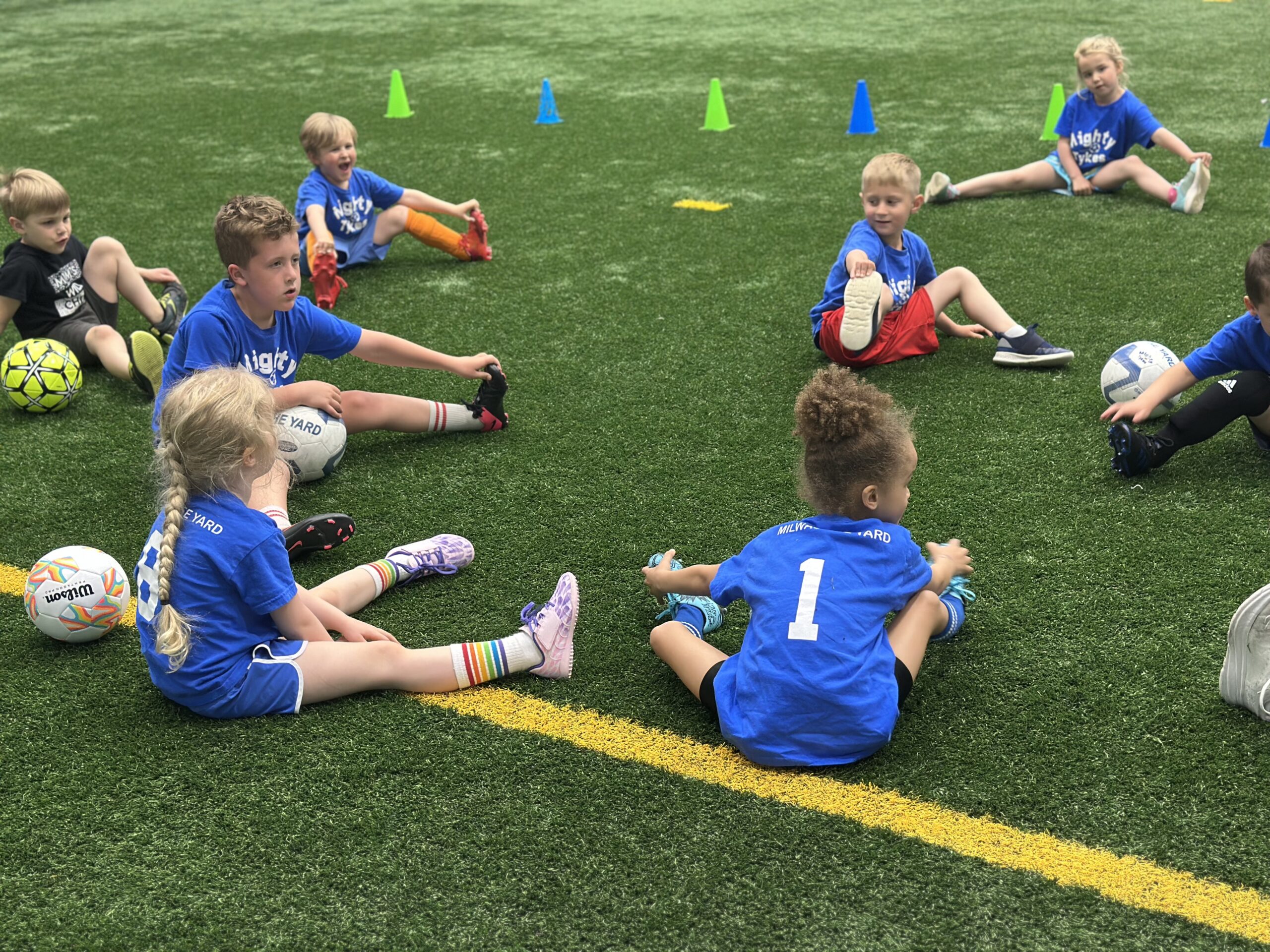 Mighty Tykes Soccer at Milwaukee Yard is a developmental soccer program for children ages 2 to 6 in Oak Creek, Wisconsin. Classes are divided into 4 age groups (2 to 3, 3 to 4, 4 to 5, and 5 to 6) and meet weekly on Wednesdays and Saturdays on our professional grade indoor turf fields.